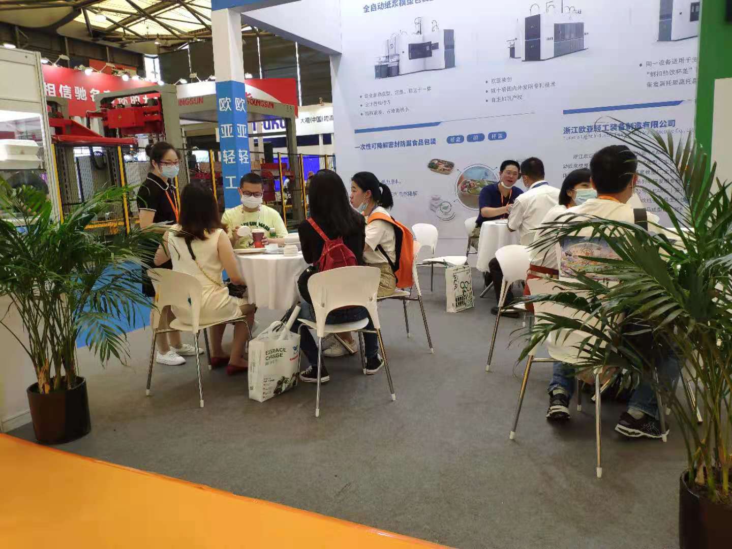7月14日至16日,2021中國包裝容器展在上海新國際博覽中心舉行,iPackCon中國包裝容器展覽會是國內(nèi)專業(yè)的全品種包裝容器專業(yè)展示平臺,集中展示紙、塑料、金屬、玻璃等材質(zhì)包裝容器,創(chuàng)新包裝設(shè)計,包裝發(fā)展趨勢以及整體包裝解決方案。隨著國際國內(nèi)禁塑料工作的推進(jìn),可完全自然降解的植物纖維模塑制品在包裝領(lǐng)域的地位凸顯。參加本次會展的有國內(nèi)植物纖維(紙漿)模塑制品制造商、設(shè)備制造商、助劑供應(yīng)商。歐亞輕工(EAMC)參加了本次會展,展會上展出了EAMC“成型、定型、切邊、打孔”一體機(jī)和EAMC紙漿模塑杯蓋生產(chǎn)技術(shù)。