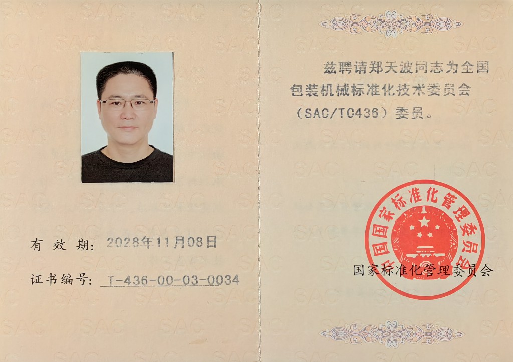 歐亞輕工董事長、教授級工程師鄭天波被國家標準化管理委員會聘為技術委委員,雖然是紙漿模塑設備領域唯一的委員,但紙漿模塑領域的專家第一次進入國標委,標志著紙漿模塑行業(yè)越來越受到重視。